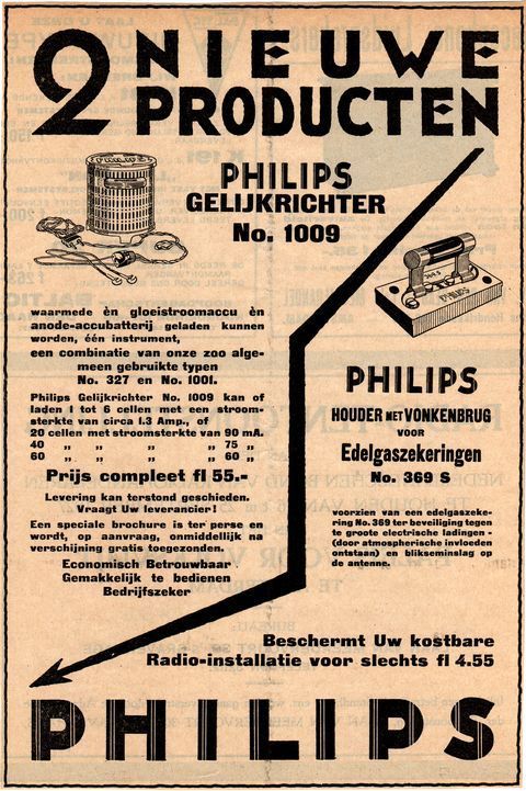 2 NIEUWE PRODUCTEN PHILIPS GELIJKRICHTER No. 1009 |