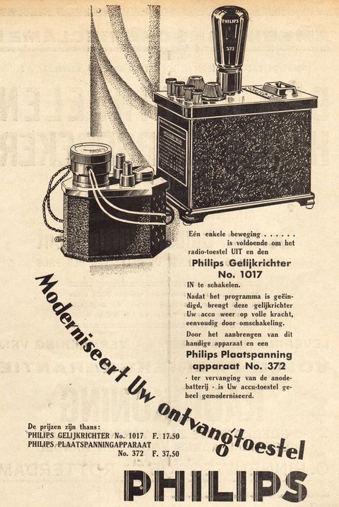 Advertentie voor gelijkrichter type 1017 en plaatspanningapparaat type 372 |