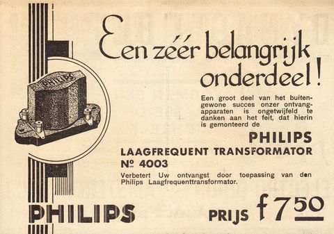 Advertentie voor laagfrequent transformator type 4003, 1929