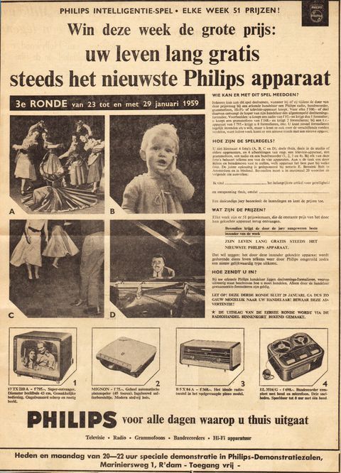 Advertentie voor TV, radio, grammofoons en bandrecorders, 1959