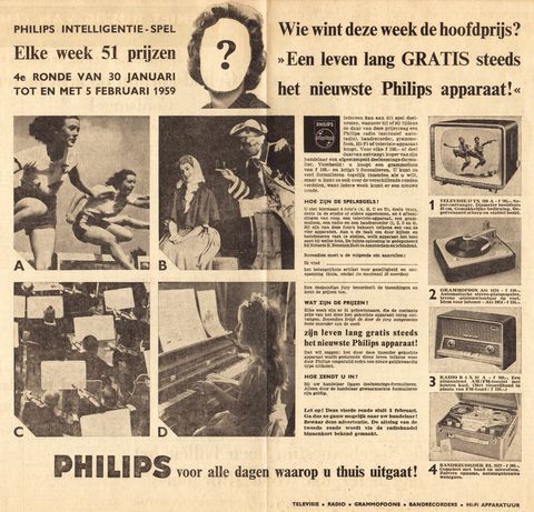 Advertentie voor TV, radio, grammofoons en bandrecorders, 1959