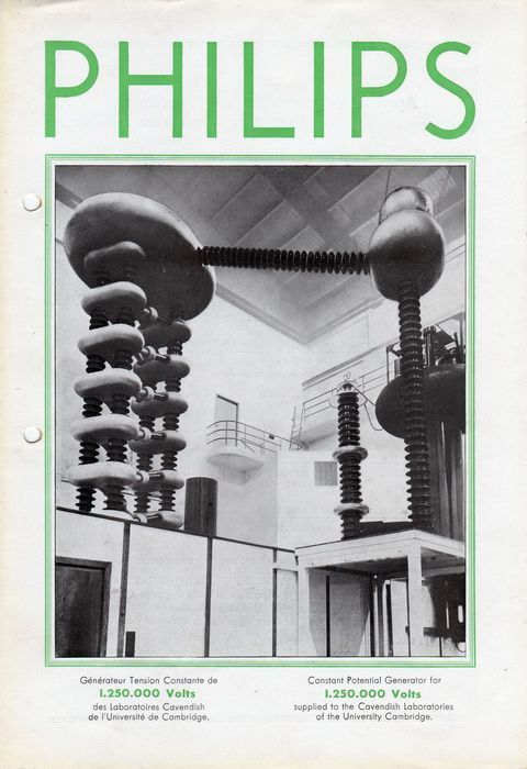 Reclamefolder voor hoogspanningsgeneratoren, 1937