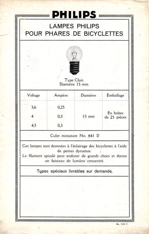 LAMPES PHILIPS POUR PHARES DE BICYCLETTES |