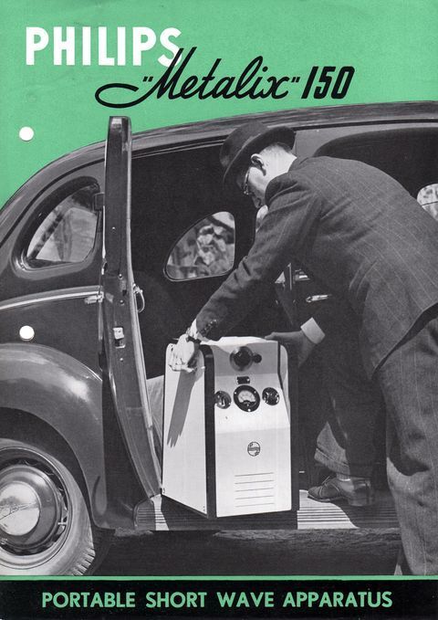 Reclamefolder voor draagbaar kortegolfapparaat, 1947