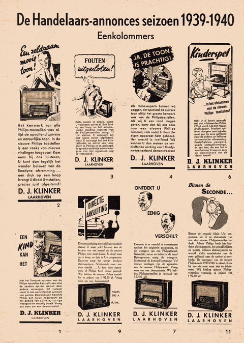 Folder met voorbeelden van advertenties voor de handelaar, 1939