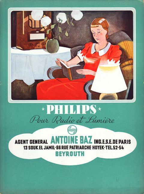 Etalagekarton voor radioapparaten en gloeilampen, ca. 1938