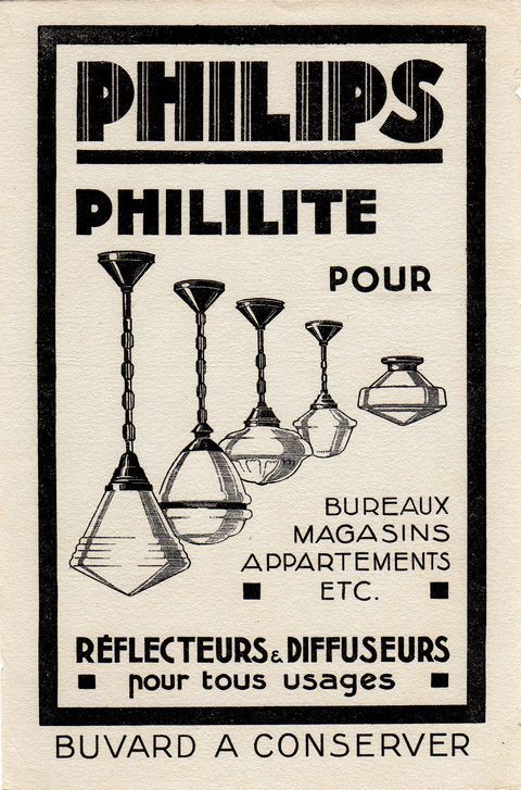 Vloeiblad met reclame voor lichtarmaturen voor winkels, kantoren, etc., ca. 1930