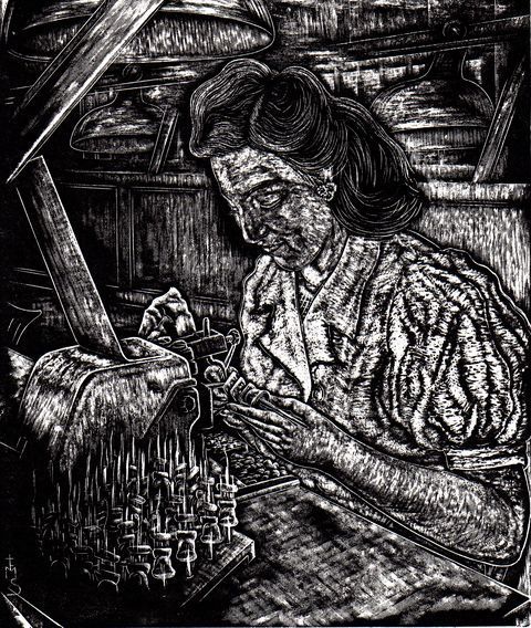 Gravure: Het Stelmaken van een Gloeilamp, 1949
