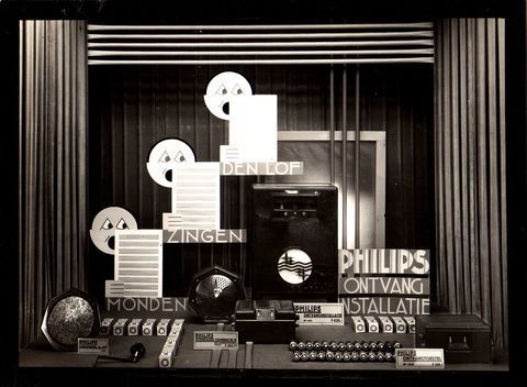 Reclamefoto voor radio, radiobuizen en luidsprekers, ca. 1931