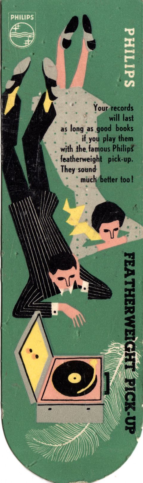 Boekenlegger met reclame voor platenspelers, ca. 1955