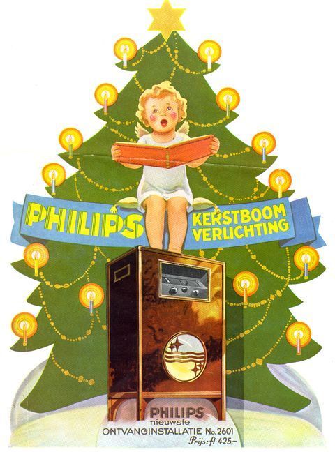 Etalagekarton met reclame voor kerstboomverlichting en radioapparaat type 2601, ca. 1931