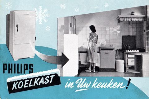 Reclamebriefkaart voor koelkasten, ca. 1952.