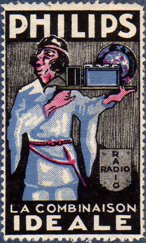 Sluitzegel met reclame voor radioapparaten en radiotoebehoren, ca. 1928