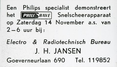 Projectieplaatje met reclame voor scheerapparaten, ca. 1951