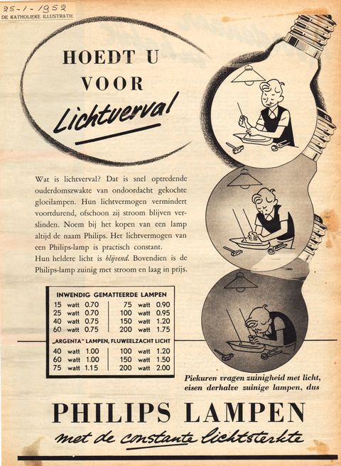 Advertentie voor gloeilampen, 1952