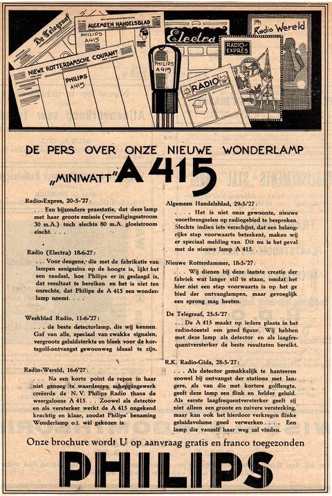 Advertentie voor radiobuis A415, 1927