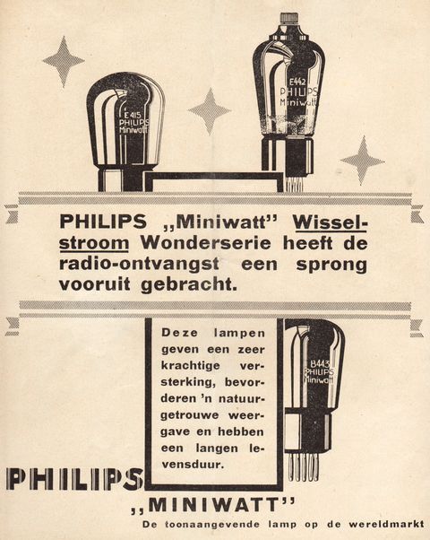 PHILIPS "MINIWATT" Wisselstroom Wonderserie heeft de radio-ontvangst een sprong voruit gebracht. |