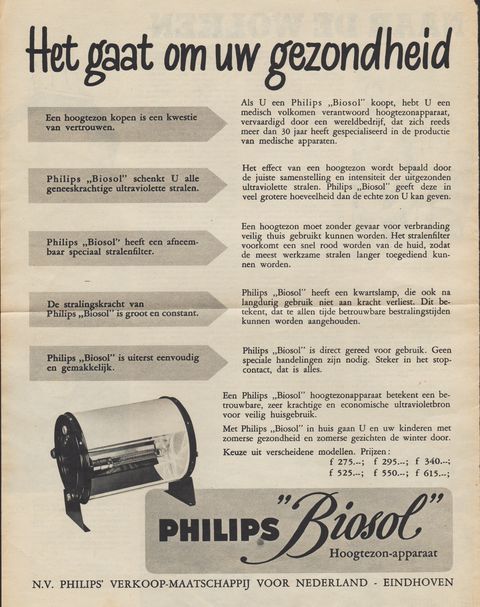 Omschrijving: Advertentie voor hoogtezonapparaten