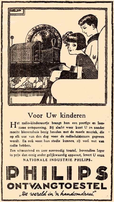 Advertentie voor radioapparaten en luidsprekers, 1928