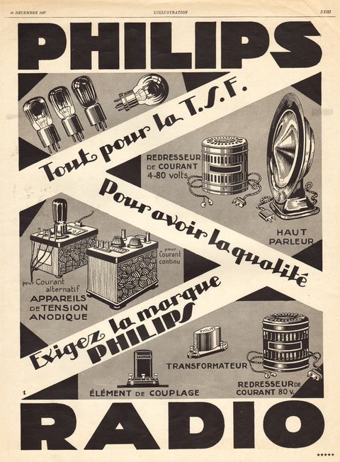 Advertentie voor luidsprekers, radiobuizen en radiotoebehoren, 1927