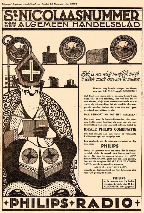 Advertentie voor radioapparaten, luidsprekers en radiotoebehoren, 1928
