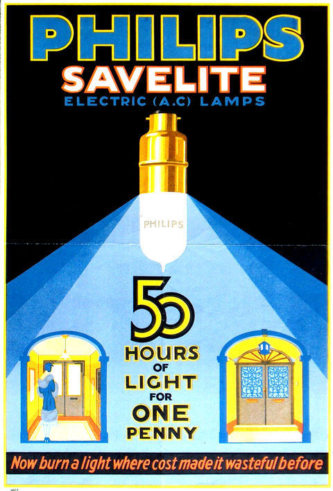 PHILIPS SAVELITE ELECTRIC (A.C) LAMPS 50 HOURS OF LIGHT FOR ONE PENNY |