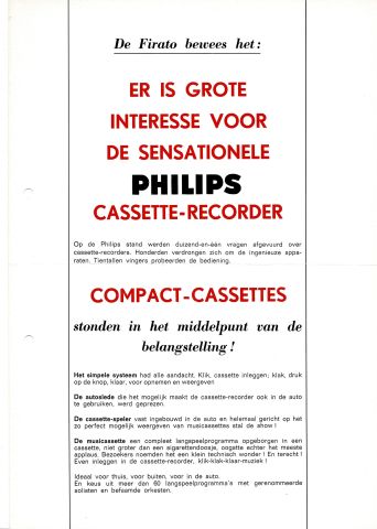 De Firato bewees het: ER IS GROTE BELANGSTELLING VOOR DE SENSATIONELE PHILIPS CASSETTE-RECORDER |