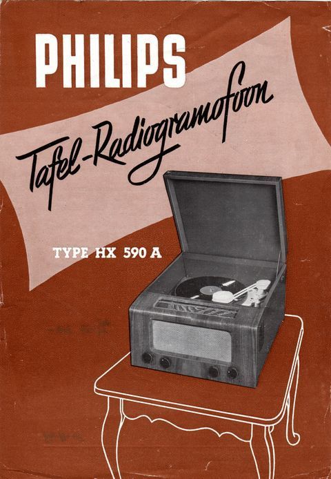 Opschrift: PHILIPS Tafel-Radiogramofoon TYPE HX590A