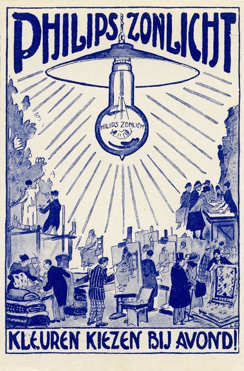 Reclamebriefkaart voor zonlichtlampen, 1918