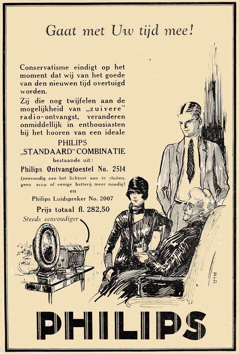 Advertentie voor radiotoestel 2514 en luidspreker type 2007, 1928