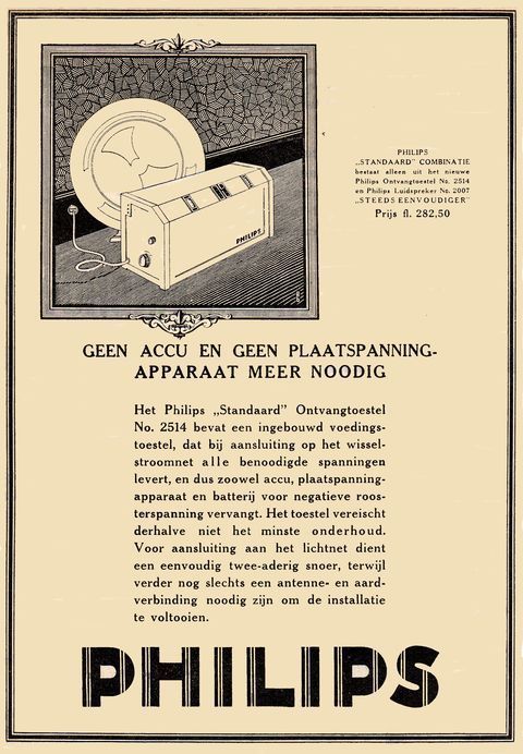 Advertentie voor radiotoestel 2514 en luidspreker type 2007, 1928