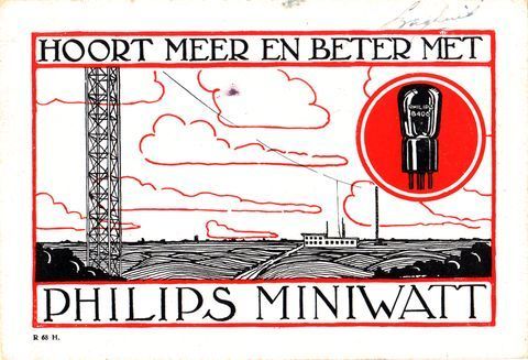 Vloeiblad met reclame voor de Miniwatt-radiobuis type B406, ca. 1926