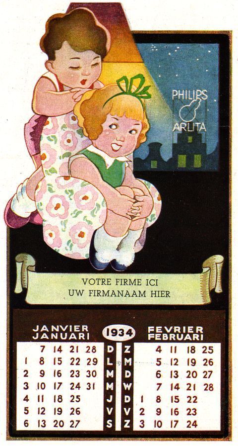 Model kalenderblad met reclame voor Arlitalampen, 1933