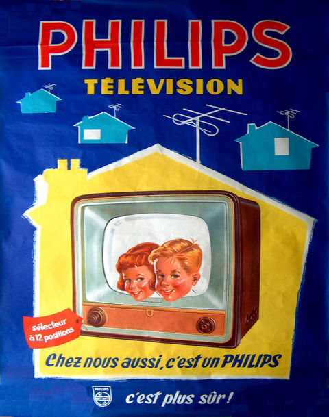 Opschrift: PHILIPS TÉLÉVISION Chez nous aussi, c'est un PHILIPS